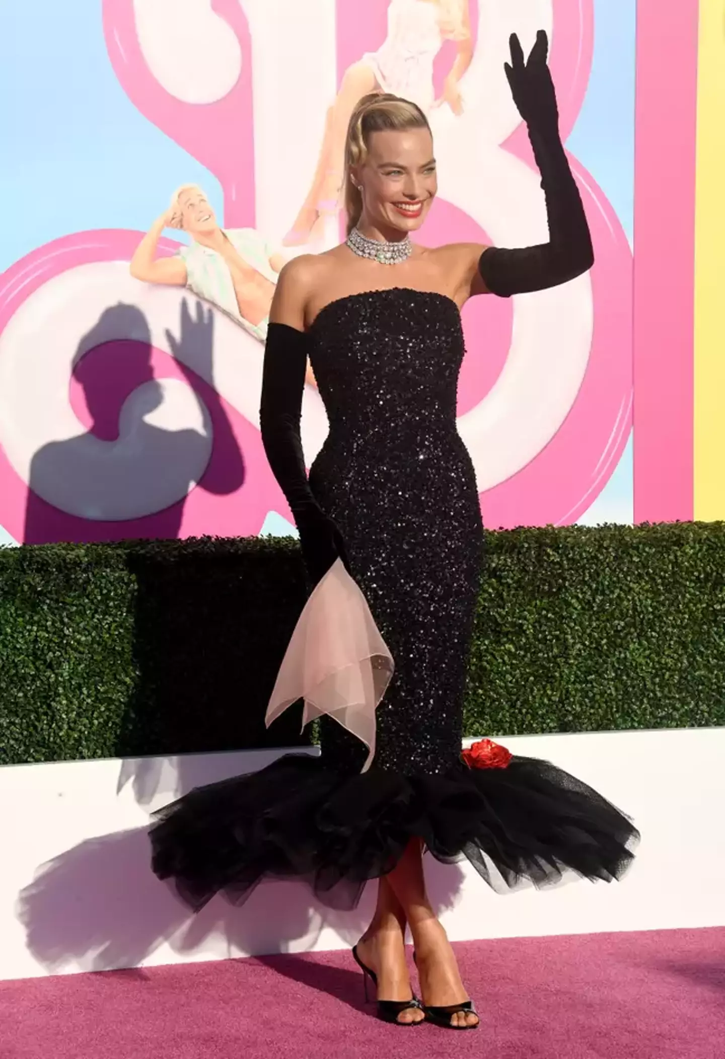 At the LA premiere, the Australian actor paid homage to the 1960s Solo in the Spotlight Barbie, wearing a Schiaparelli Haute Couture strapless gown with Lorraine Schwartz jewellery and Manolo Blahnik heels.