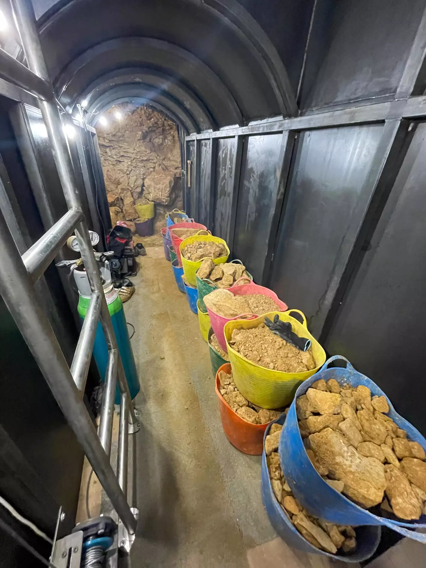 After digging down from his kitchen and removing the rubble, he then got to work on the tunnel - which is 1.2m wide and 2m high - using hydraulics to make his way through to the shed.