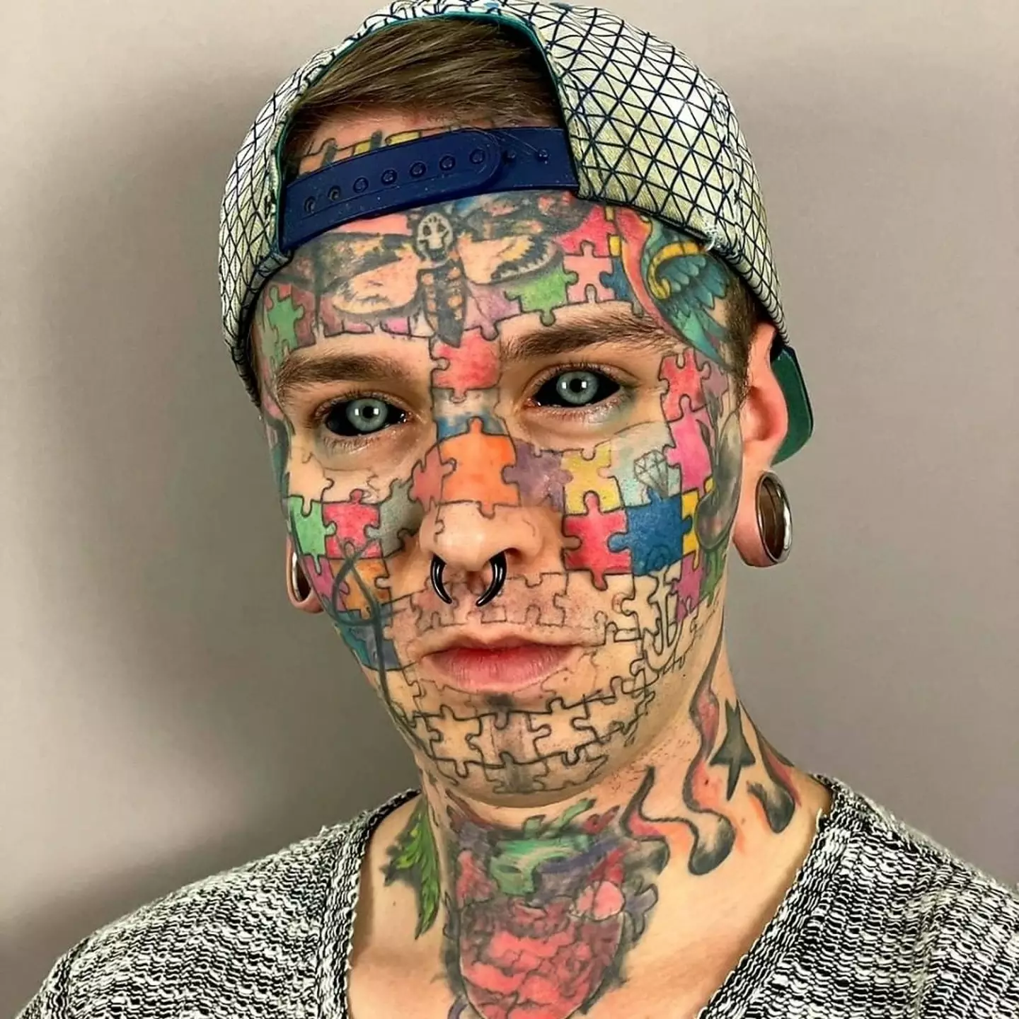 He's also inked his eyeballs and face, along with covering both rows of his teeth in titanium.