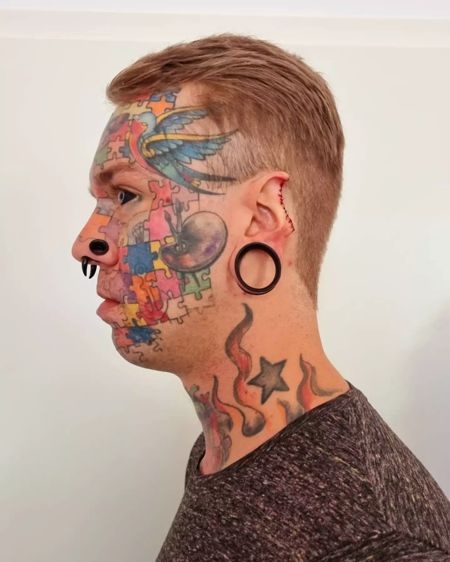 The 28-year-old has also opted to surgically remove chunks of his ear cartilage, while having his nostrils pierced and his earlobes pierced and stretched.