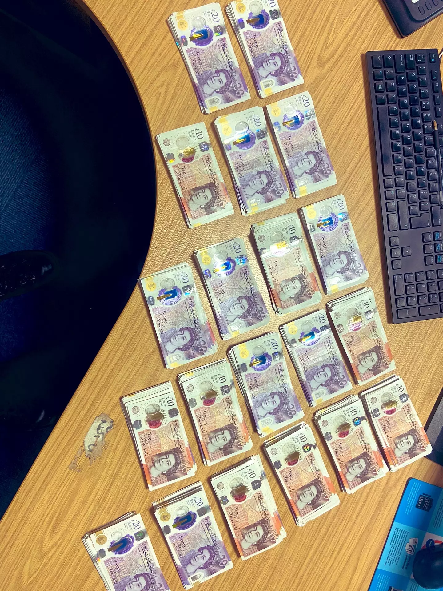 “Seen in suspicious meet in a car park before we boxed him in and arrested him. Around £24,000 seized with a large amount of suspected cocaine.