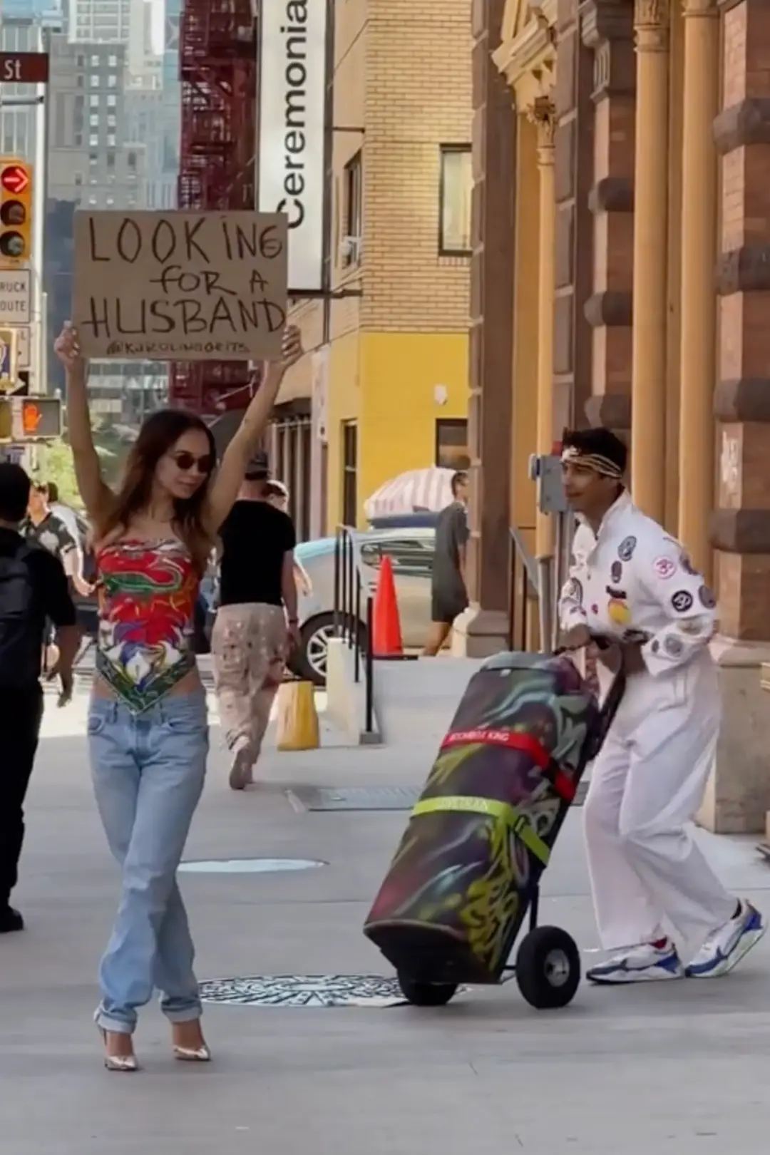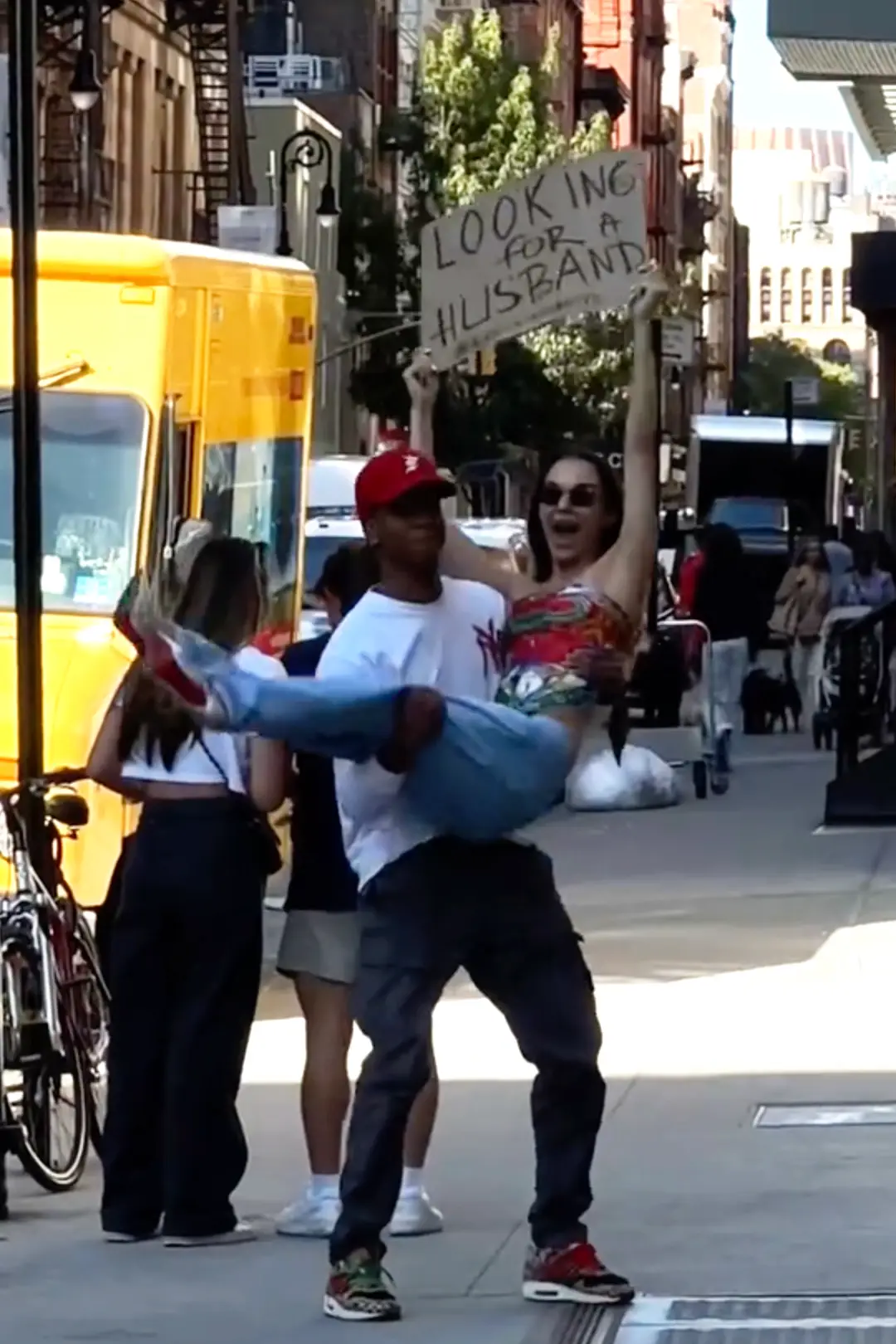 The 29-year-old created a sign that said 'Looking For A Husband' and paraded it through New York City hoping she would find more luck than on her phone.