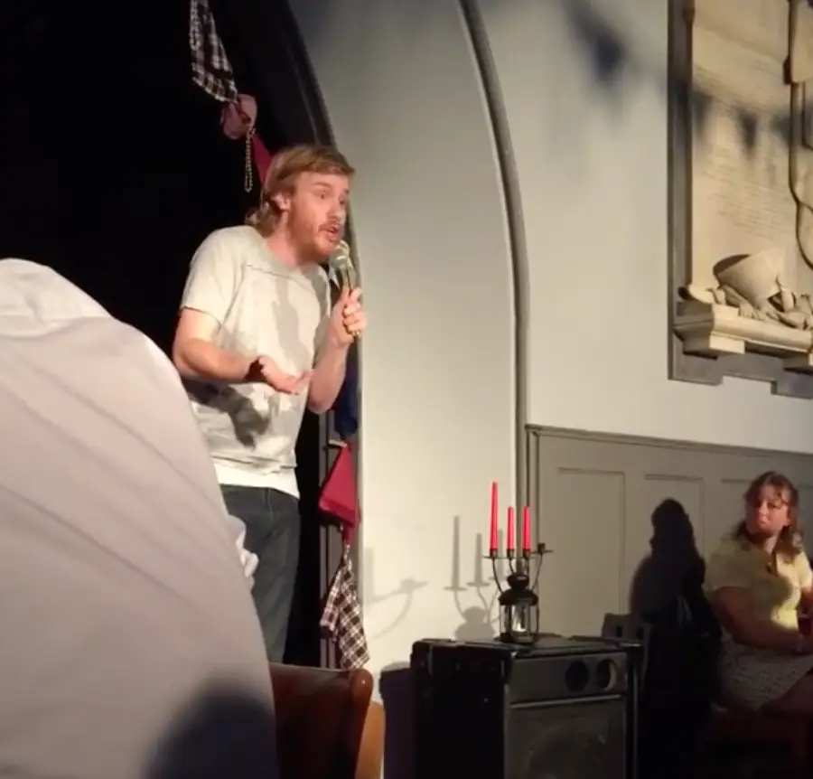 At this point, a woman in the crowd tells him to ‘stop swearing’, to which he responds: “Stop swearing? It’s comedy.