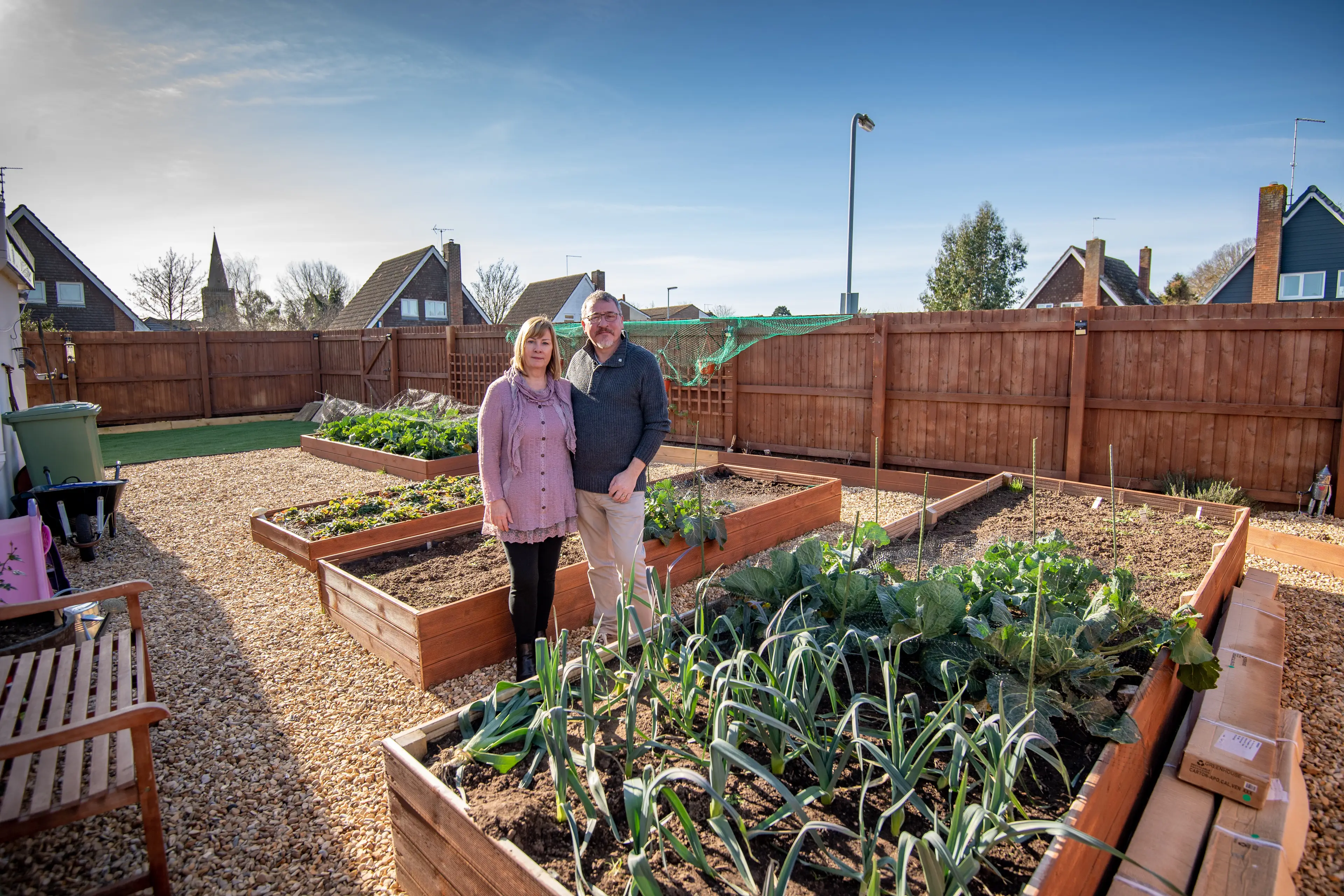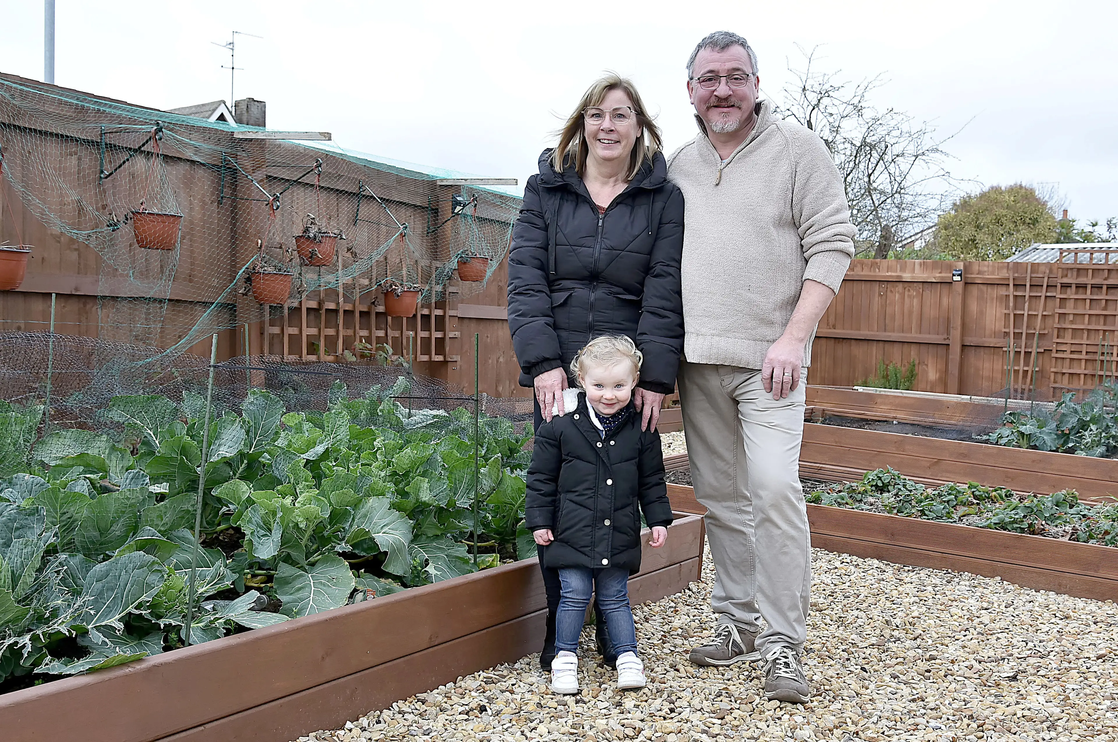 Lee and Kirstie Lawes built the plot by transforming part of their lawn into raised beds to grow their own produce alongside their two-year-old granddaughter, Ella.