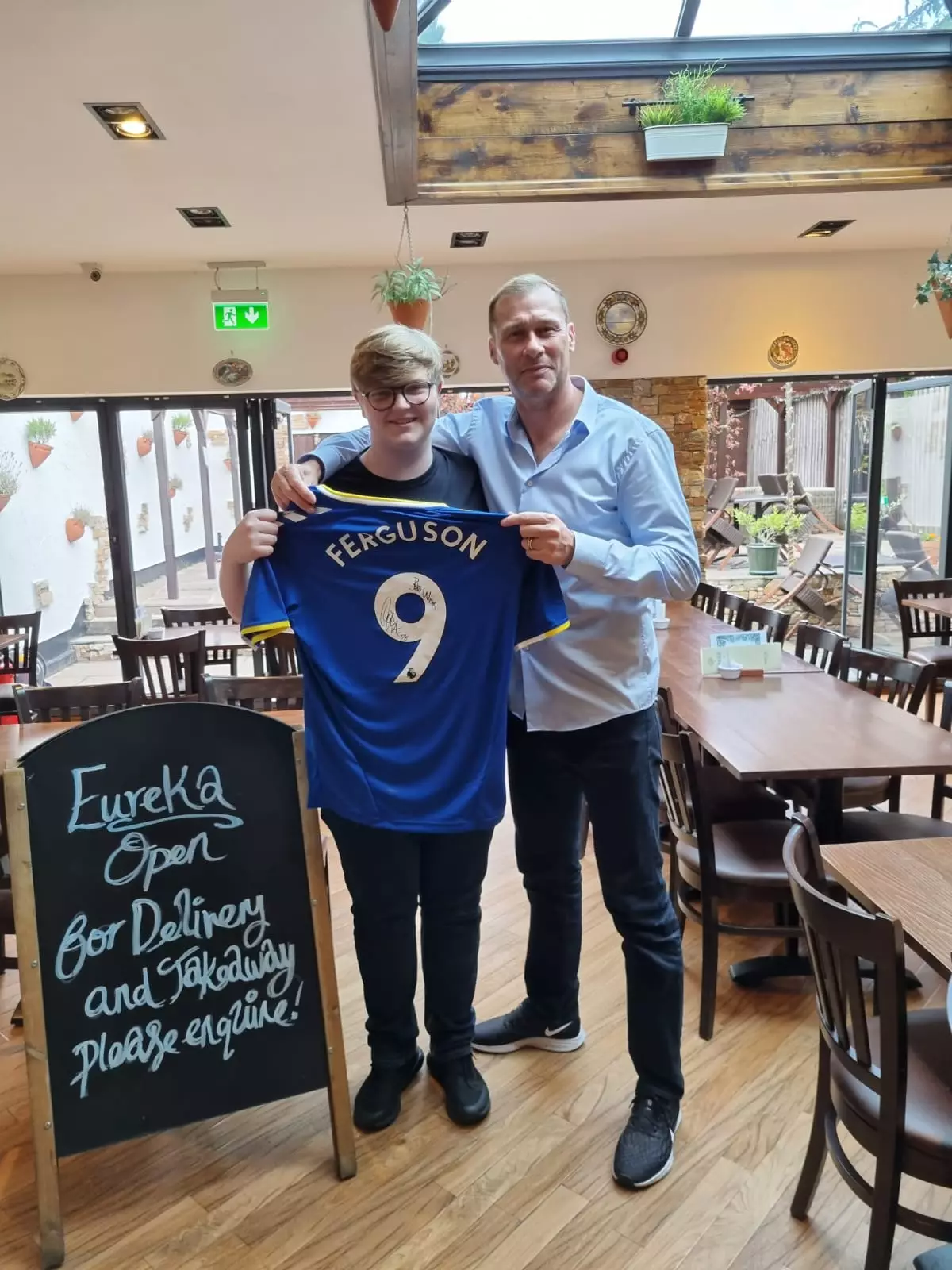 'Life-long Evertonian' Tom Simmons, 18, had been struggling with school work earlier this year, prompting his worried photography teacher Mr Wyatt to think outside of the box - enlisting the help of former footballer Duncan 'Big Dunc' Ferguson, who is currently assistant manager at Everton.