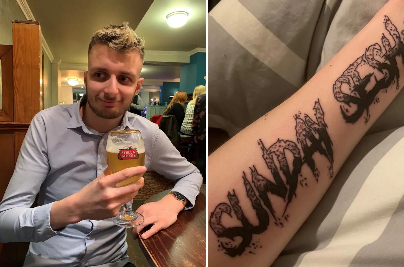 Charlie, who also has the words 'Sunday sesh' and 'yeah, baby, yeah' tattooed on him, said the tattoo took more than three hours to complete and cost £500, but in fairness to the tattooist artist, he's done a decent job.