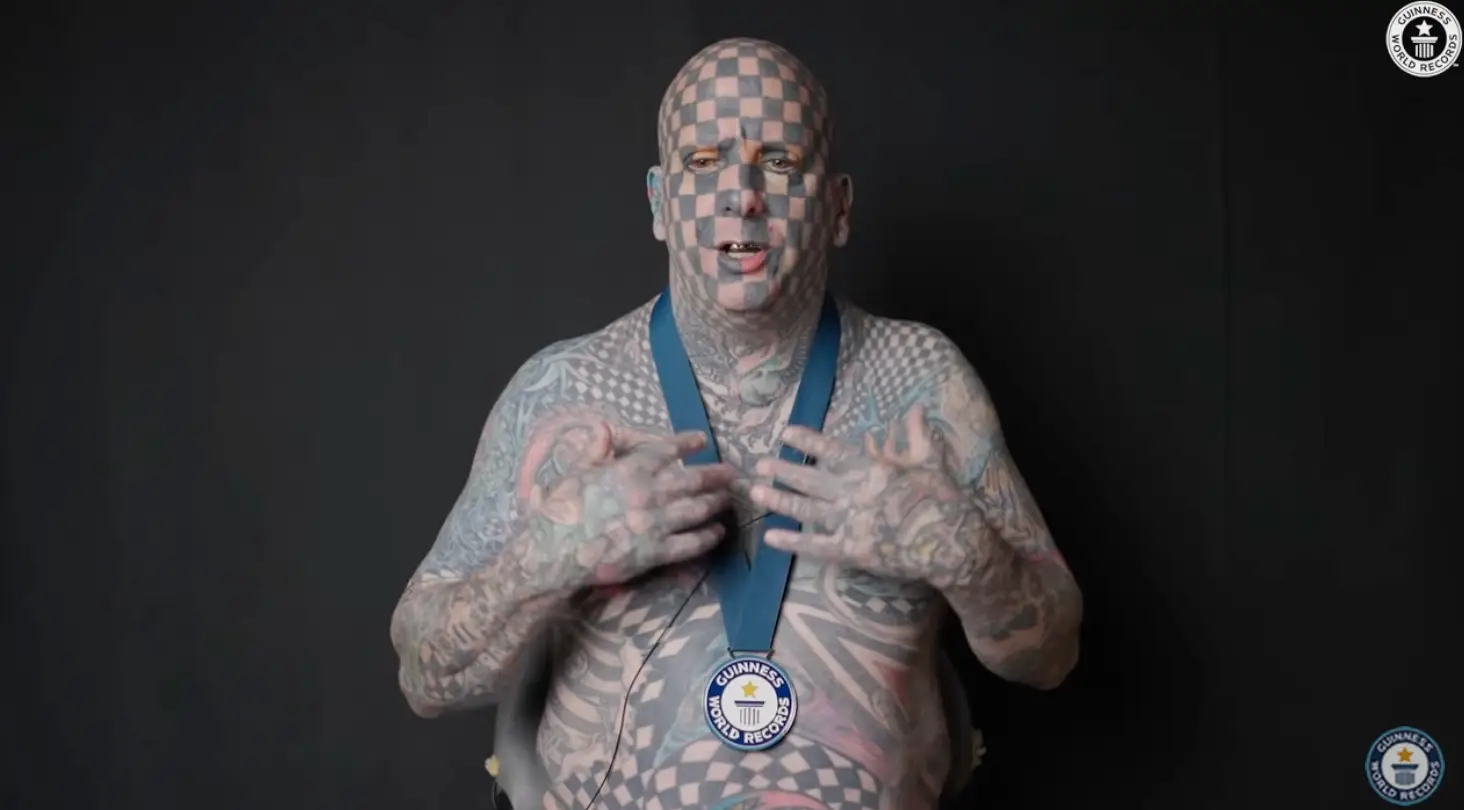 Matt Gone has a whopping 848 small black squares tattooed onto his body, which has earned him a Guinness World Record.
