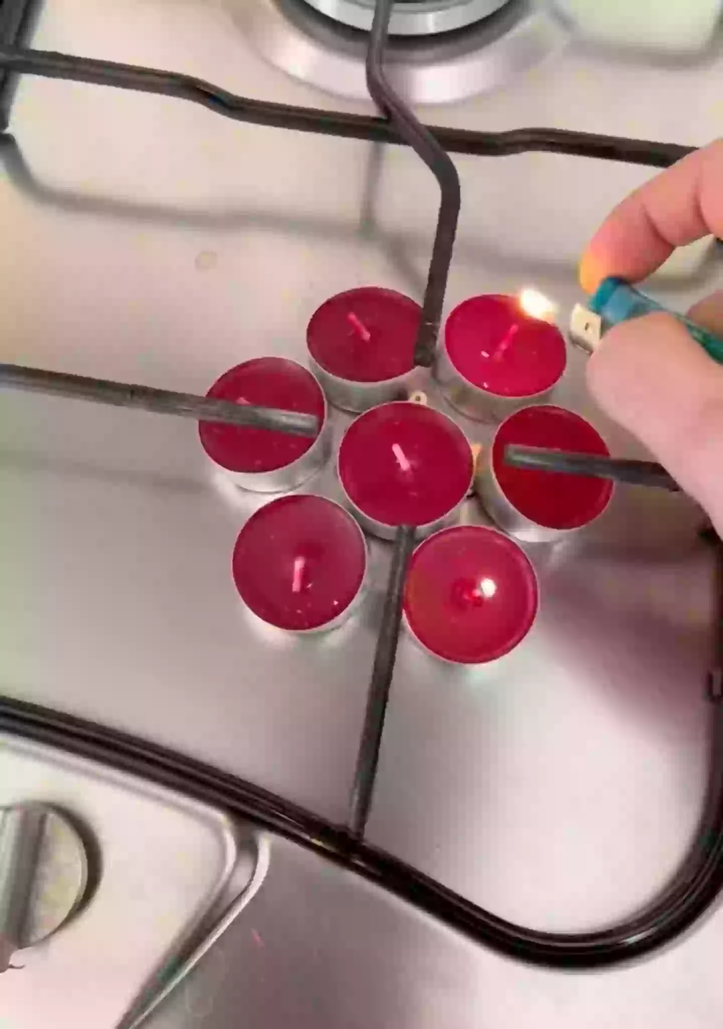 You know those tiny candles you get from IKEA? Well, in the clip he uses seven of them to fry an egg.