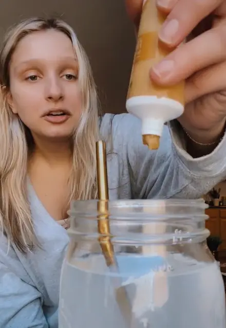 "This is literally in a tube from the store. Is it gross? Fine," she says after adding the ginger. "Enough of shaming people into thinking that they need to do everything perfectly."