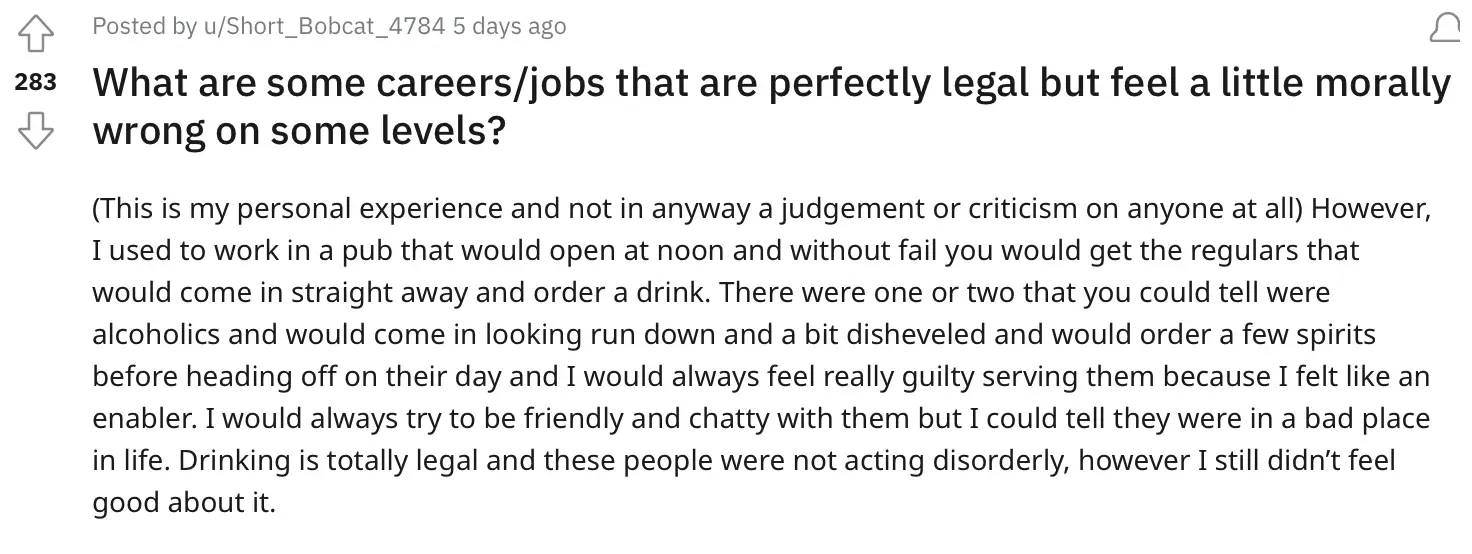 But now a discussion has started for people to share the most 'morally wrong' jobs or careers, which is mainly subjective.