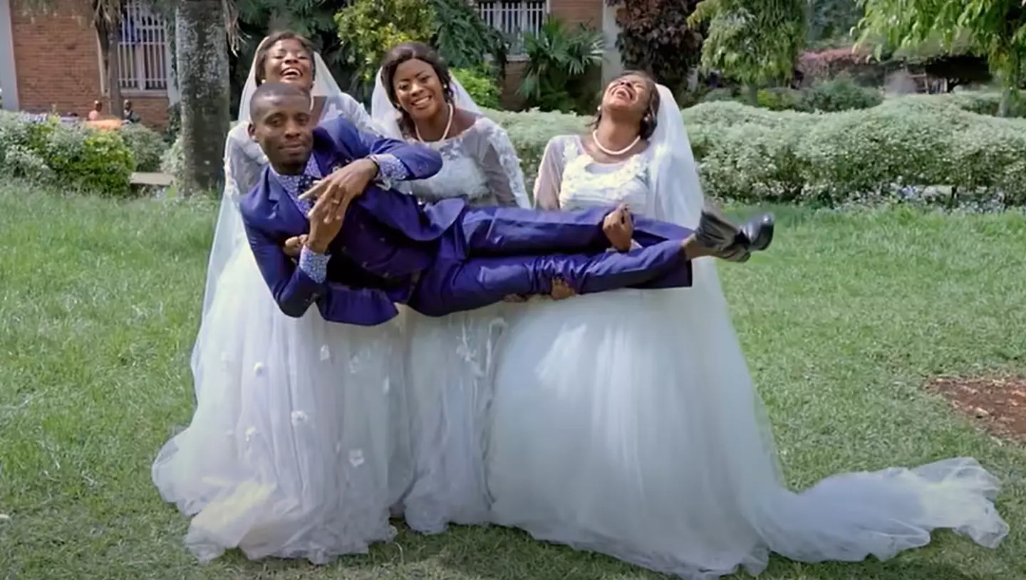 A polygamous Congolese man scored a hat-trick when he married triplets all on the same day after receiving proposals from all three of them.