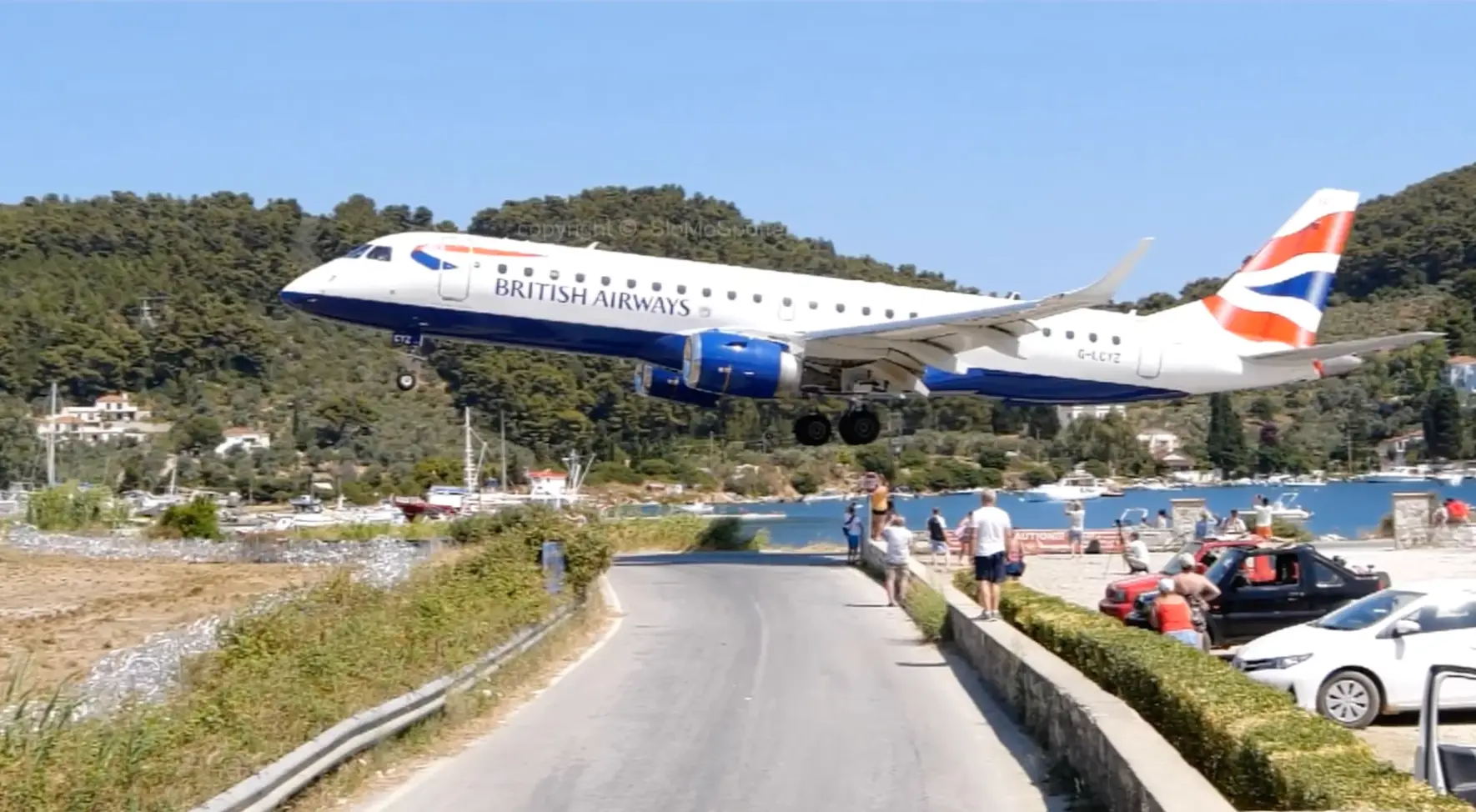Tourists and plane spotters had gathered on the road behind the runway to watch, as they tend to typically do.