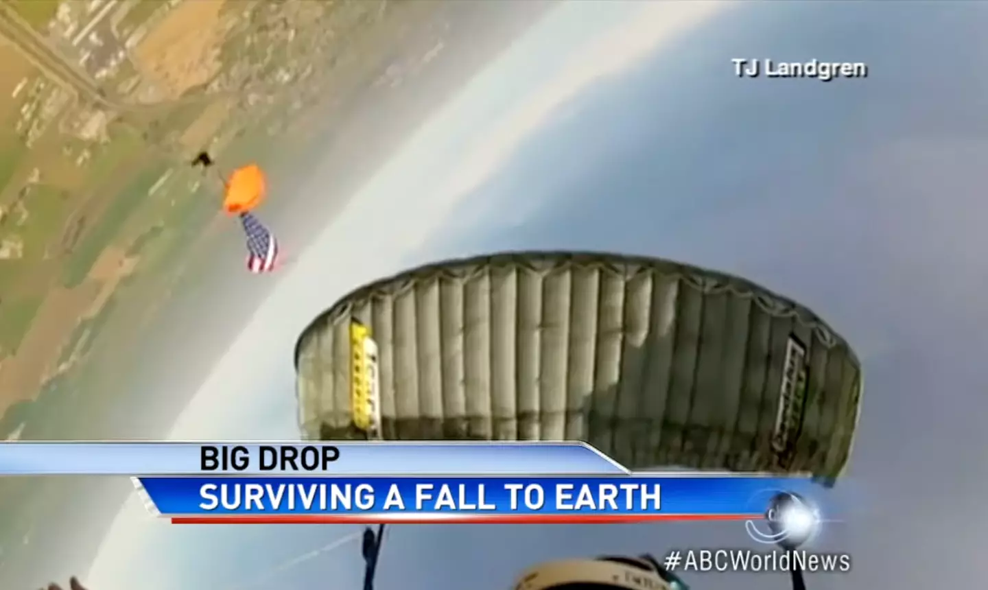 A skydiver once survived falling 8,000 feet after a complex stunt went wrong, leaving him with two failed parachutes.