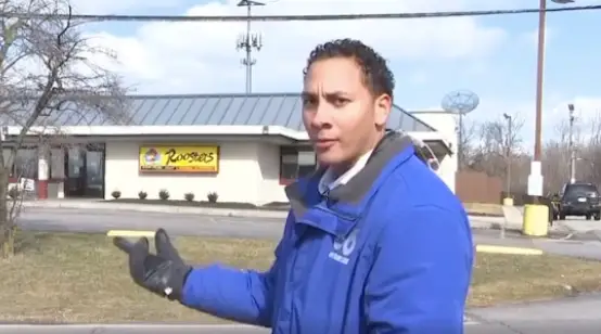 The camera was rolling with Myles front-and-centre when his mother rolls up in a car for a chat - all recorded by his colleague Deangelo Byrd.