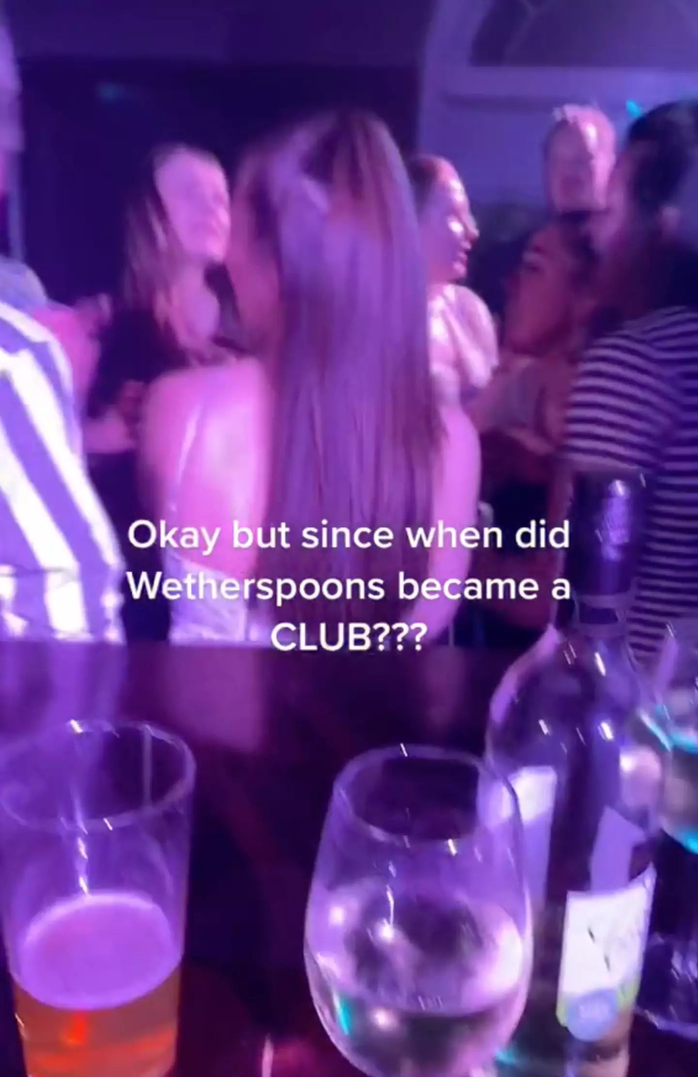 Text over the video reads: “Okay but since when did Wetherspoons become a CLUB???"