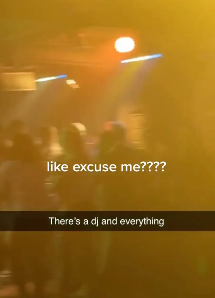 Footage shows the packed out venue, with dance lights, a DJ and 'Destination Unknown' blasting in the background.
