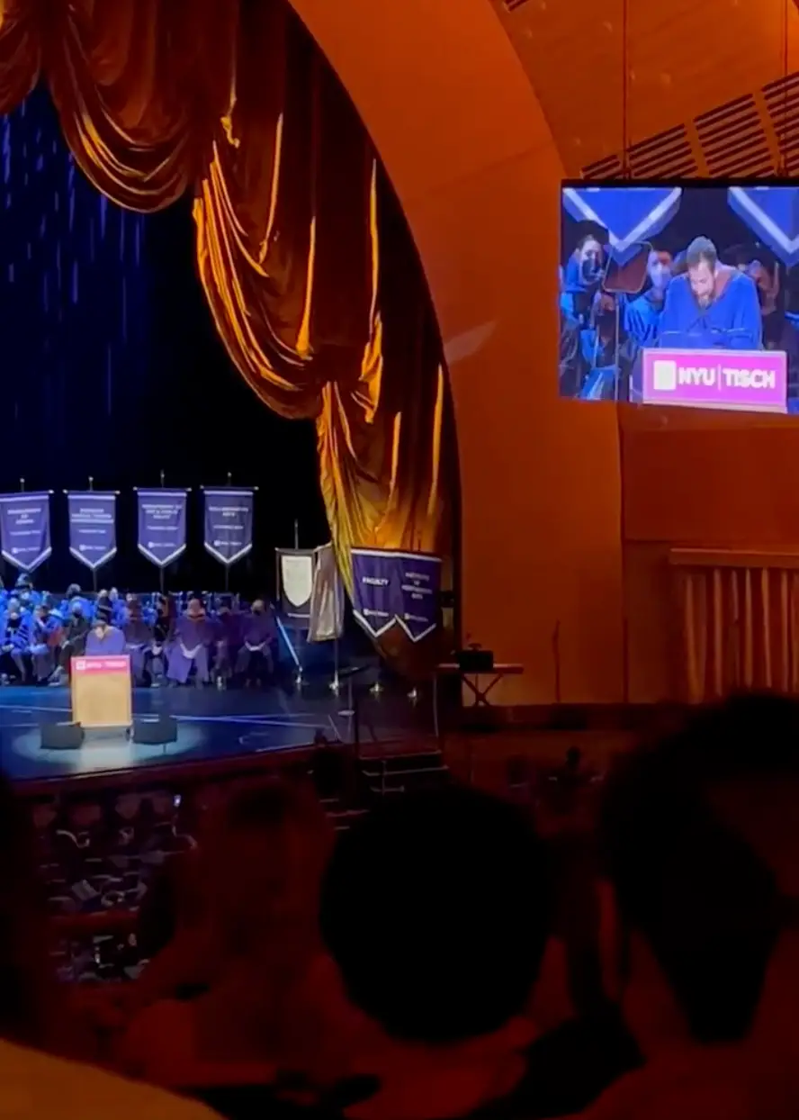 Sandler was at Radio City Music Hall addressing graduating students from New York University’s Tisch School of the Arts.