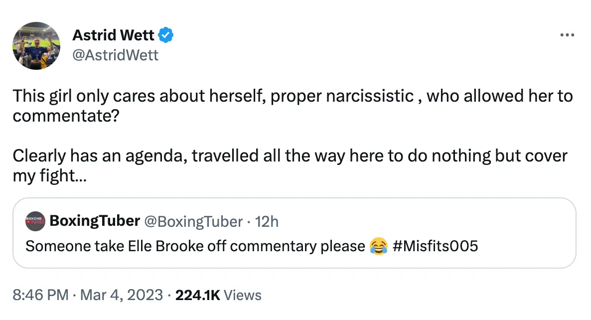 Topics: Astrid Wett, Boxing, Elle Brooke, Twitter, Sport
