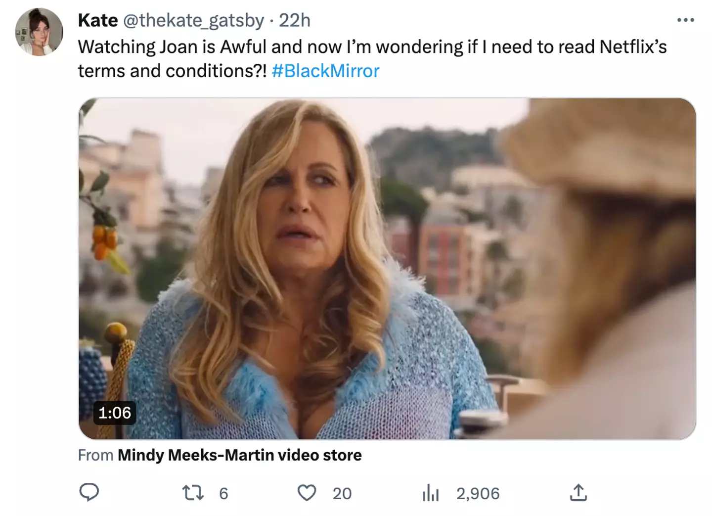 This mundane nightmare has prompted Black Mirror fans to inundate social media with variations of the same joke, with many vowing they'll always read the T&Cs from now on not to end up in a conundrum like Joan.
