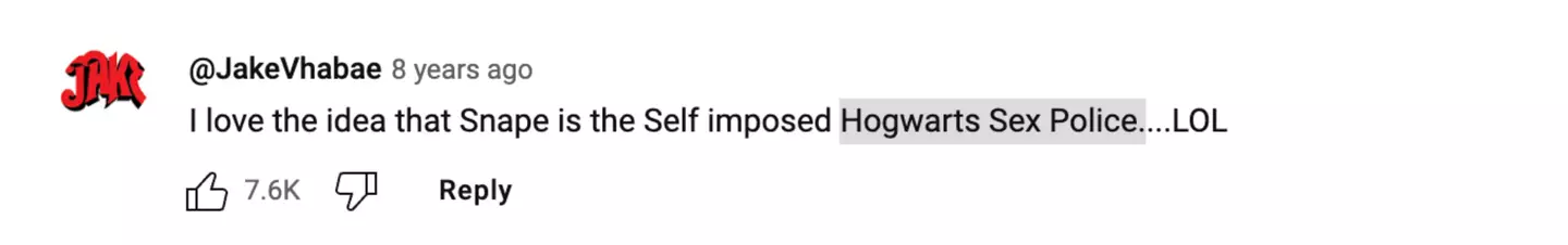 One YouTube user posted: "I love the idea that Snape is the self-imposed Hogwarts Sex Police...LOL."