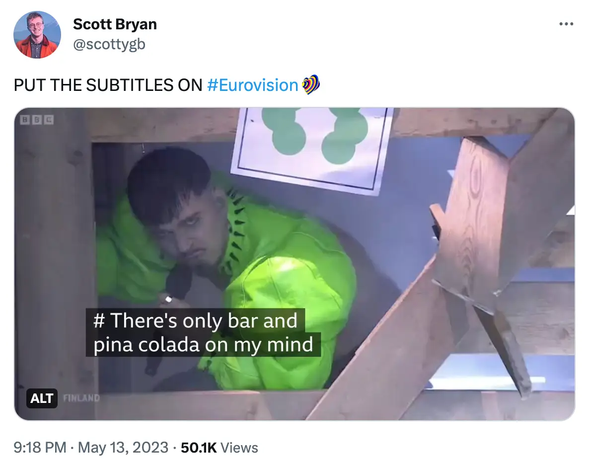 But while many of us were baffled by the on-stage action, watching as Käärijä danced his way around a bunch of wooden pallets, some watching at home had had the brainwave to put subtitles on - and they did not disappoint.