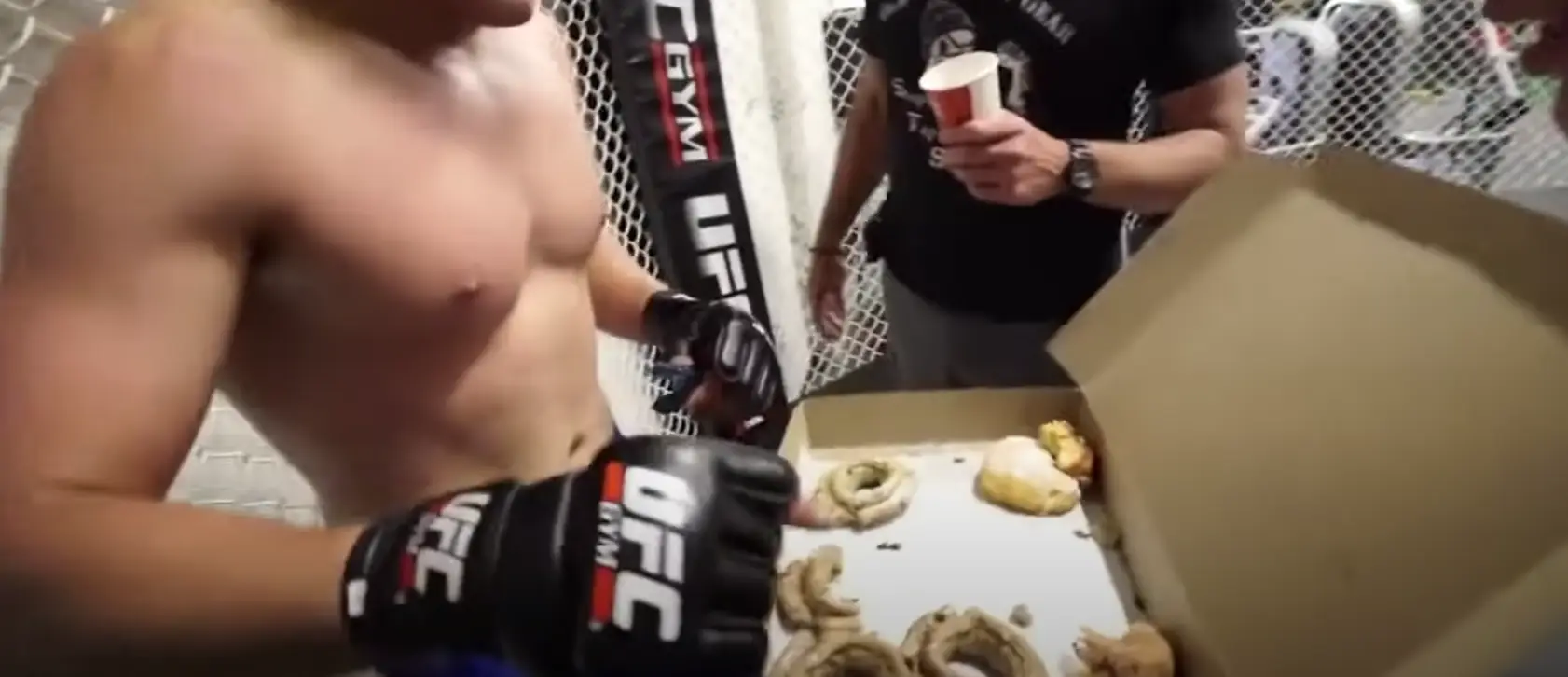 Trying to stop himself from getting repeatedly tagged, it soon became clear that maybe he didn't quite have this - probably not helped by the fact that he was seen chowing down on doughnuts in between rounds.