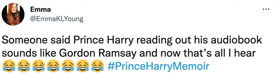 "Did Gordon Ramsay do the audiobook for Prince Harry?" wondered one Twitter user. "Or have I just never noticed how alike they sound?"