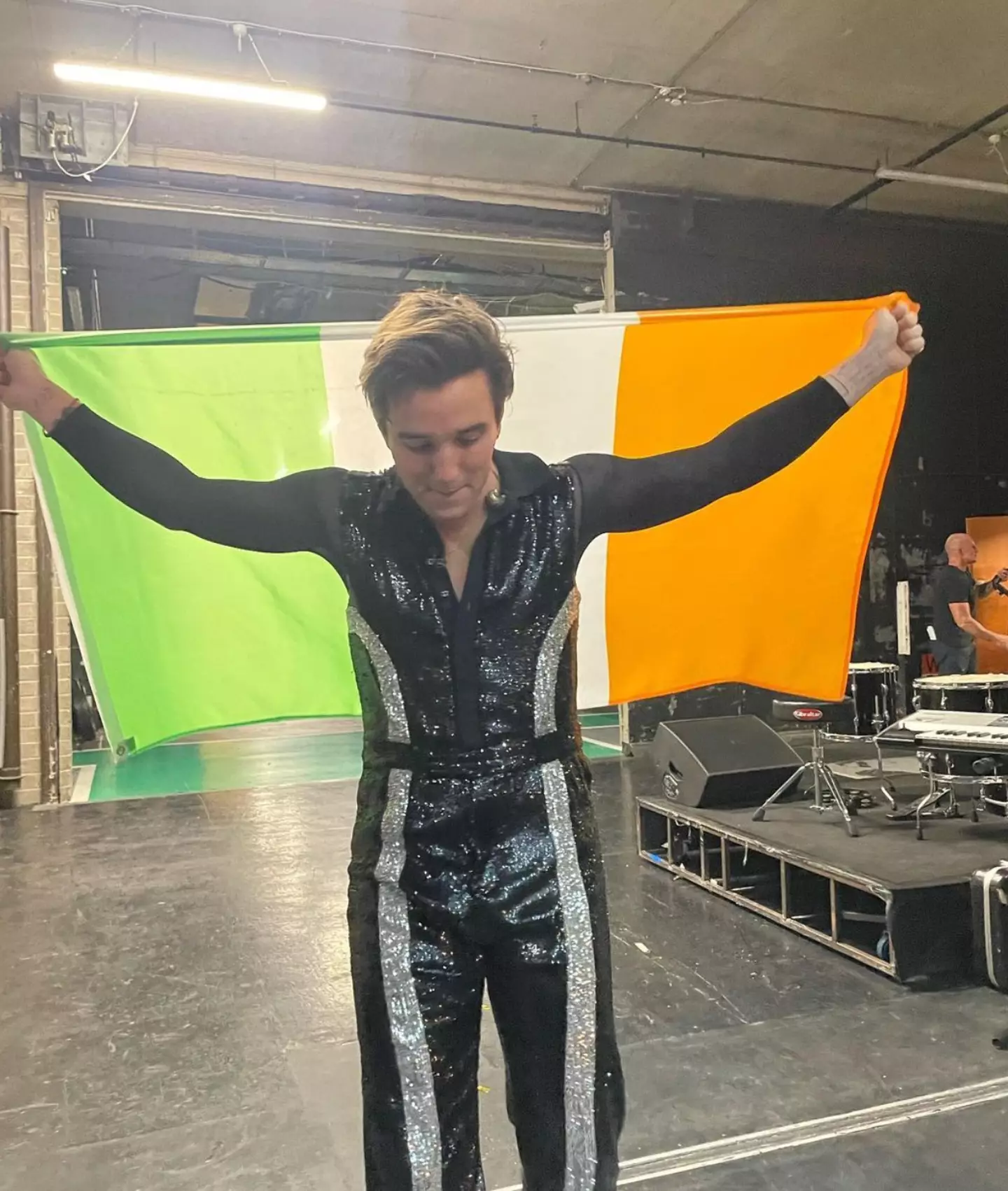 Wild Youth's frontman, Conor O'Donohoe donned a sparkling, gold sequin jumpsuit for the performance of their track 'We Are One' as the stage kept to the gold theme with its lighting, and fans waved the Irish flag in the crowd.