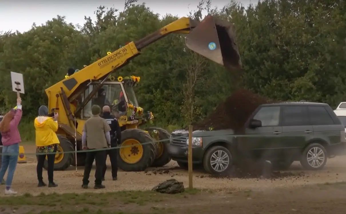 Things then took a bit of a turn when one of the protesters crept up behind Clarkson and handcuffed himself to his Range Rover door.