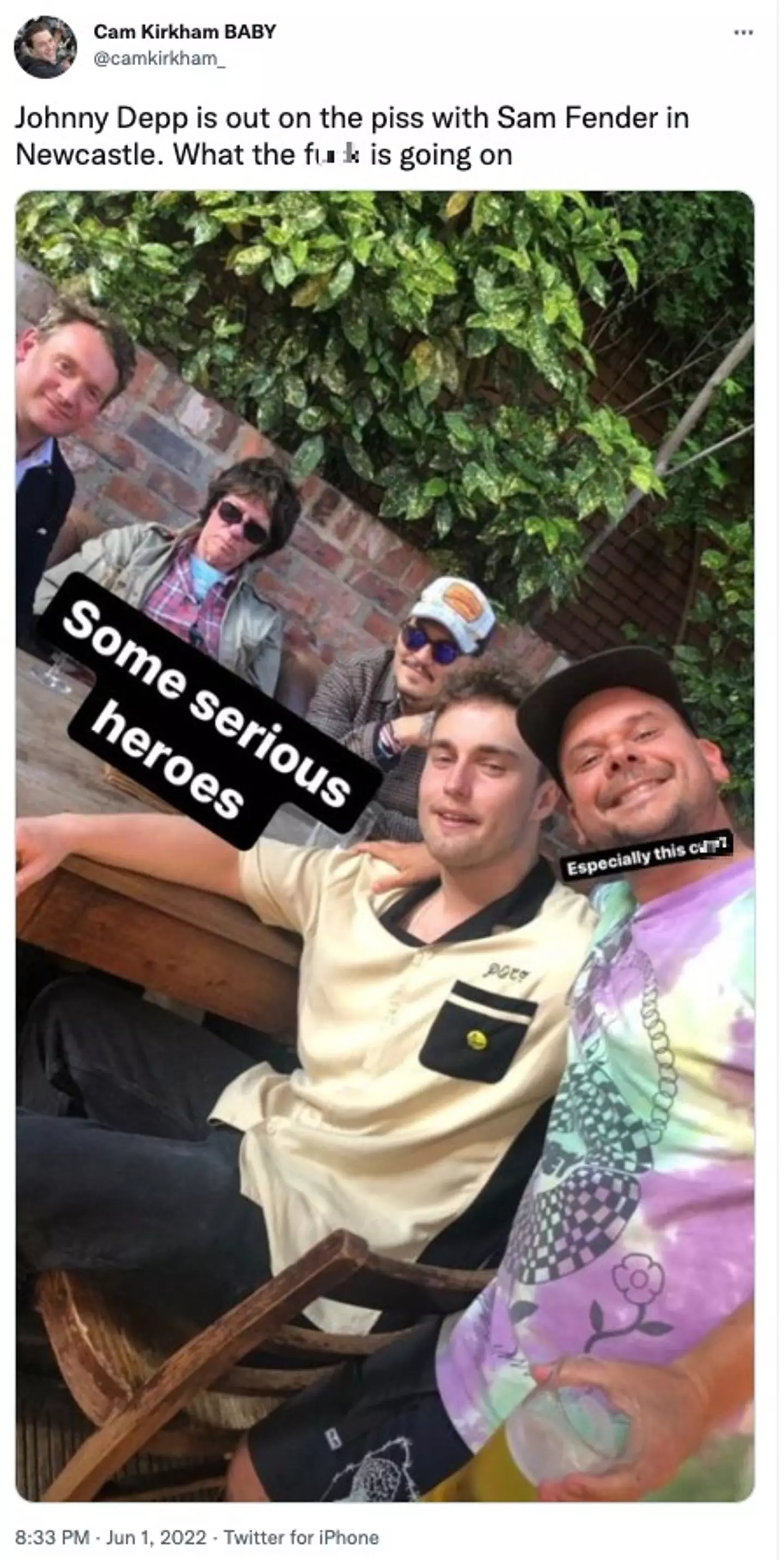 Rugby player Gary Spedding also took to Twitter to share a rather blurred shot of Depp shaking hands with a fan in another local pub, writing: "Met Johnny Depp in Bridge Tavern Newcastle just now... that was quite surreal."