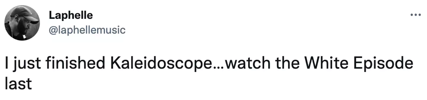 A third fan tweeted: "I just finished Kaleidoscope…watch the White Episode last."