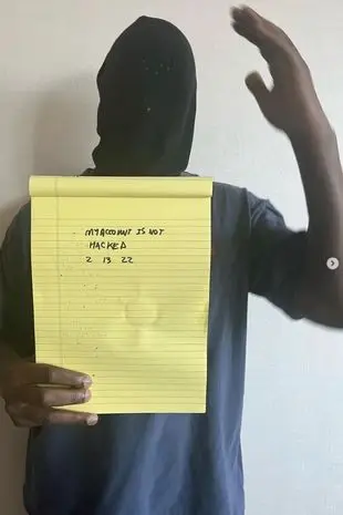 The note he was holding in the pictures read: "My account is not hacked. 2 13 22."
