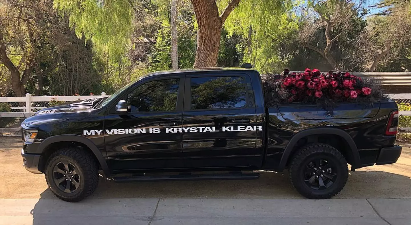 Kanye West sent a truck filled with red roses to his ex Kim Kardashian's home on Valentine's Day.