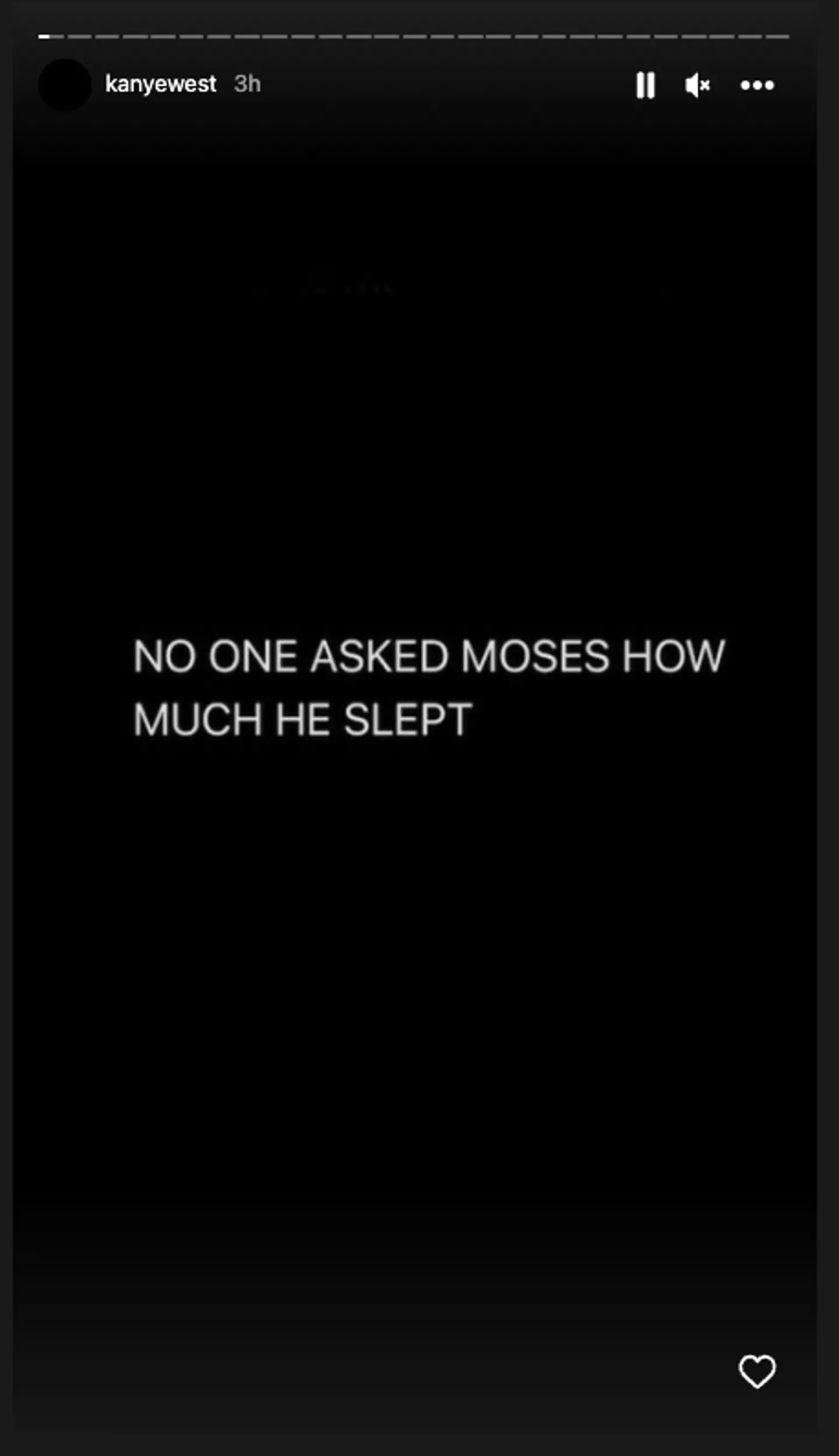 "No one asked Moses how much he slept," the Donda rapper wrote, posting the Instagram story with his typical black background with white text.