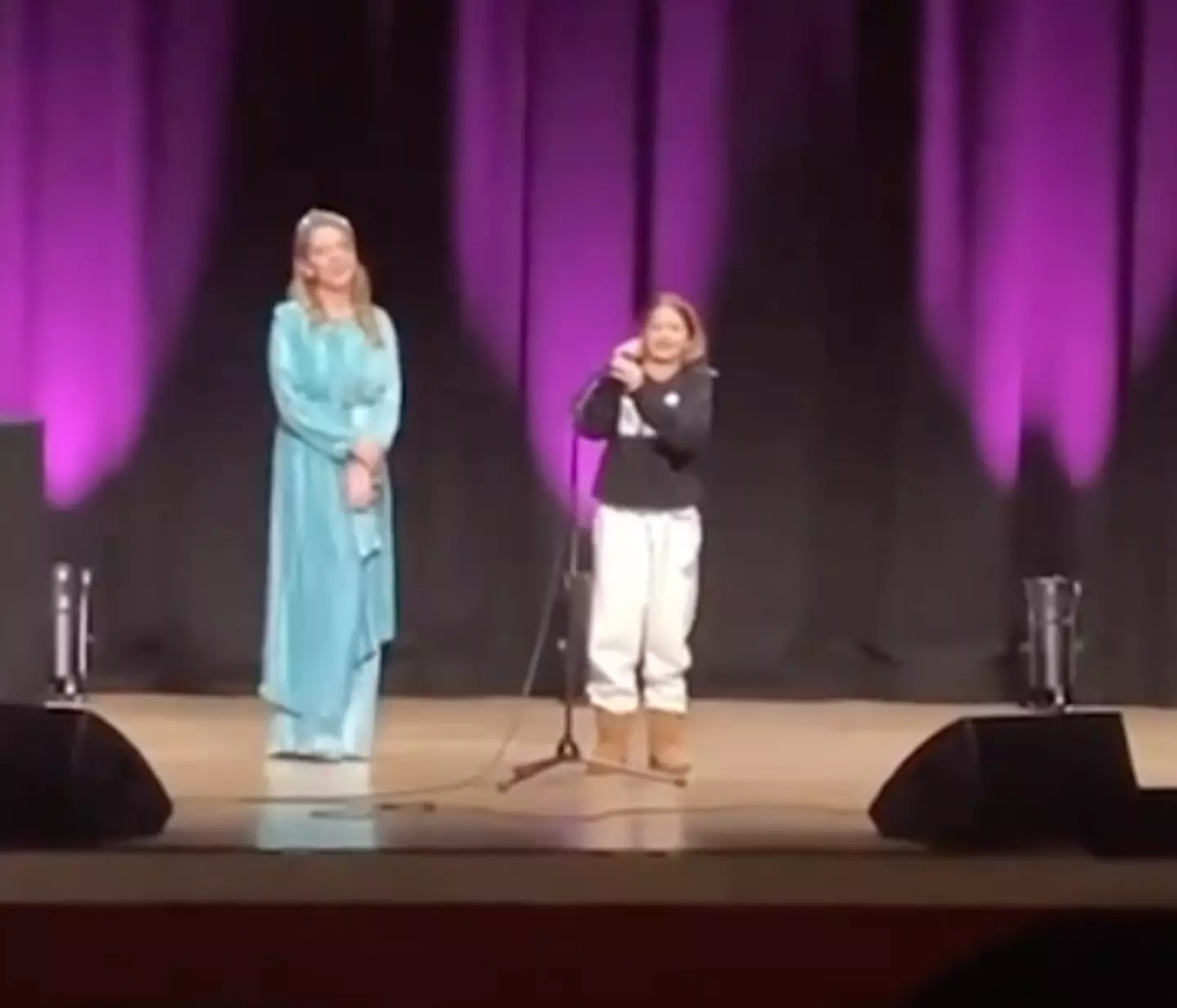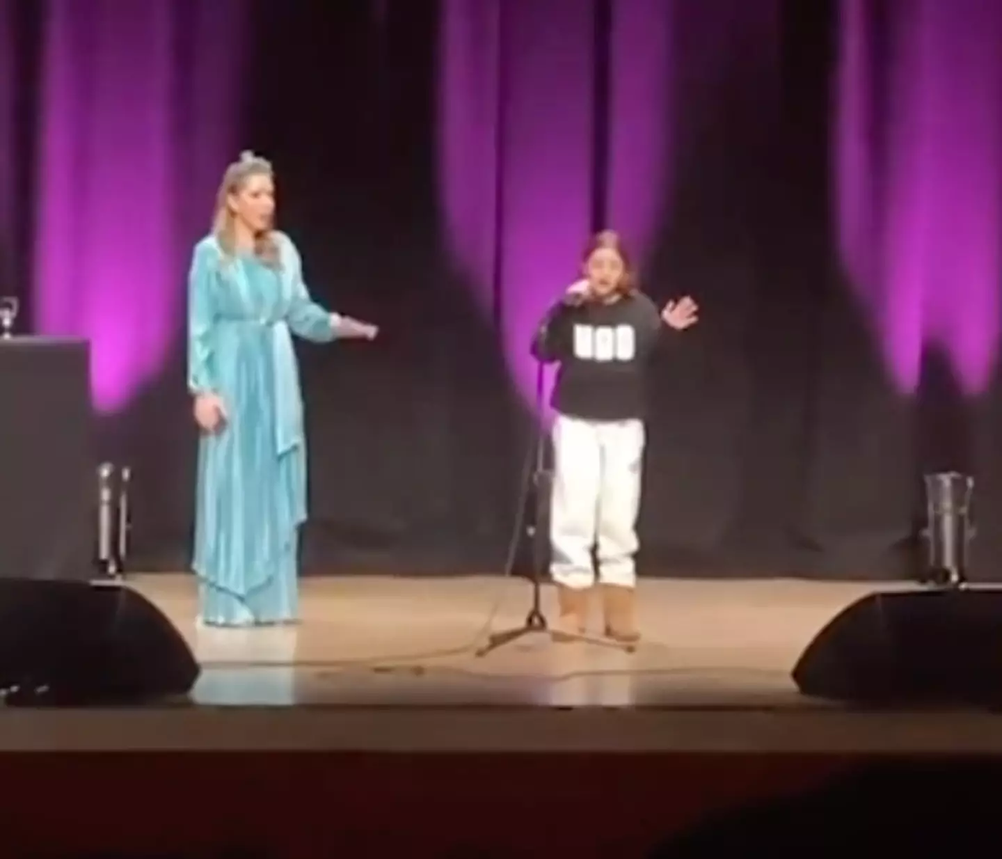 Violet came out on stage at her mum's stand-up show which was being held in De Montfort Hall, Leicester, on Saturday (12 February).