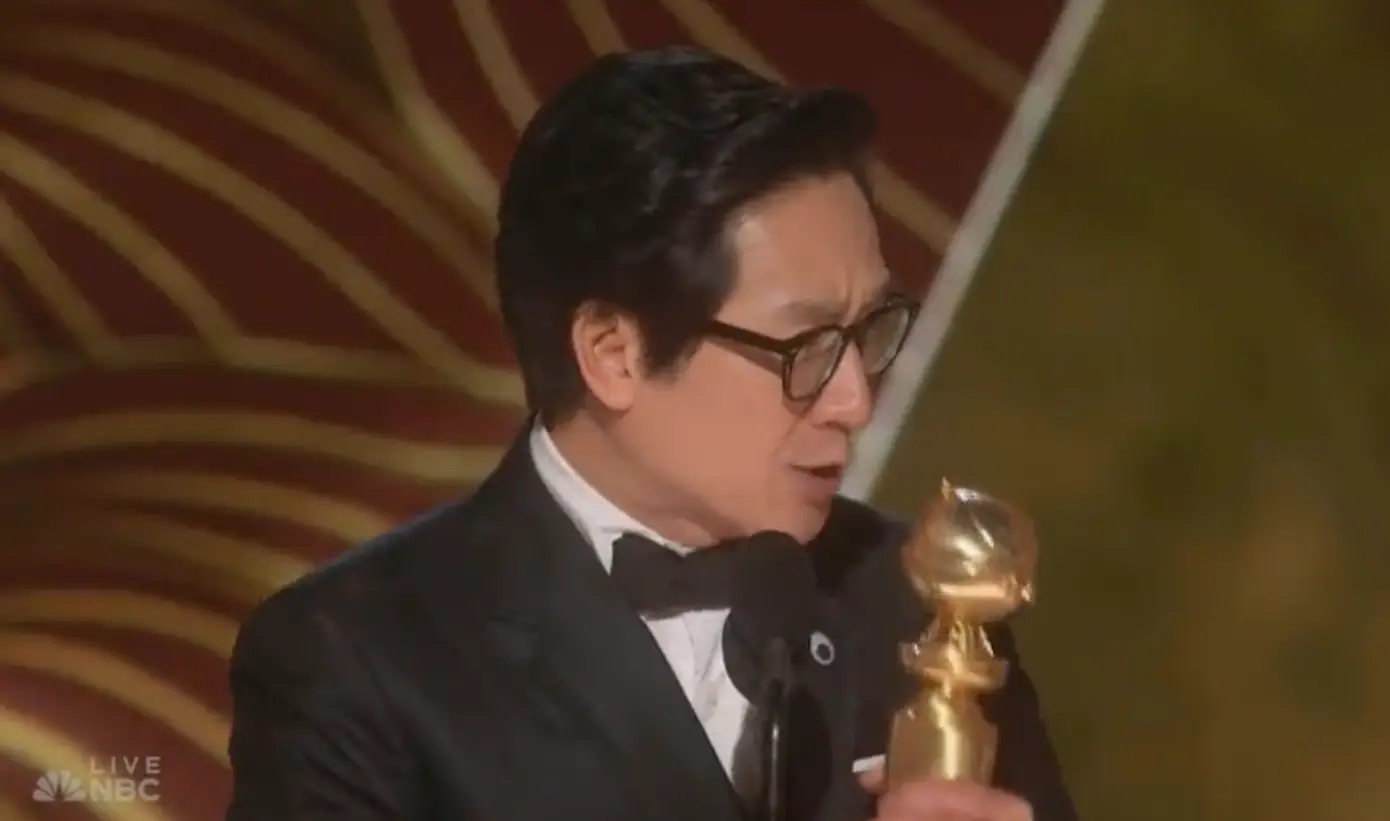 Ke Huy Quan gave a special shout out to Steven Spielberg for giving him his big break after winning a Golden Globe award for Best Supporting Actor.