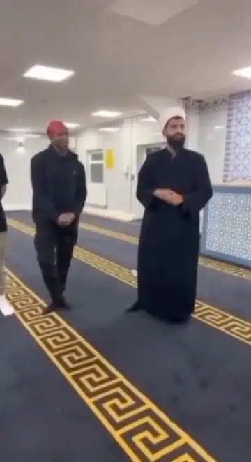 And now in a recent video - posted by TikTok account @zeesnan__s2 - KSI is filmed visiting a mosque to speak with Imam Asim, who leads prayers at the Al-Hikam Institute in Bradford.
