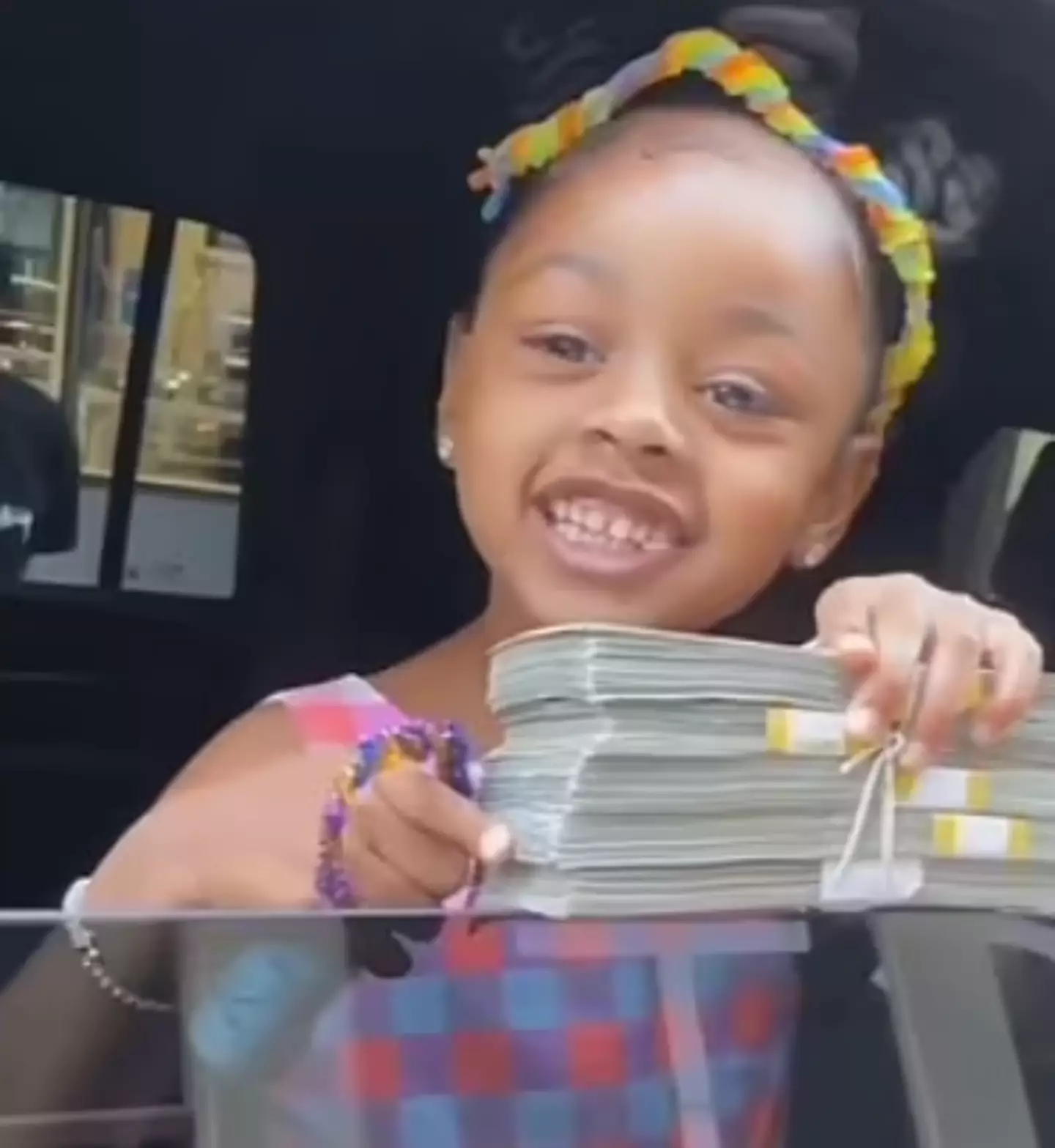 Kulture was captured on camera chilling in the back of a black SUV while her loving dad handed her the massive wads of cash.
