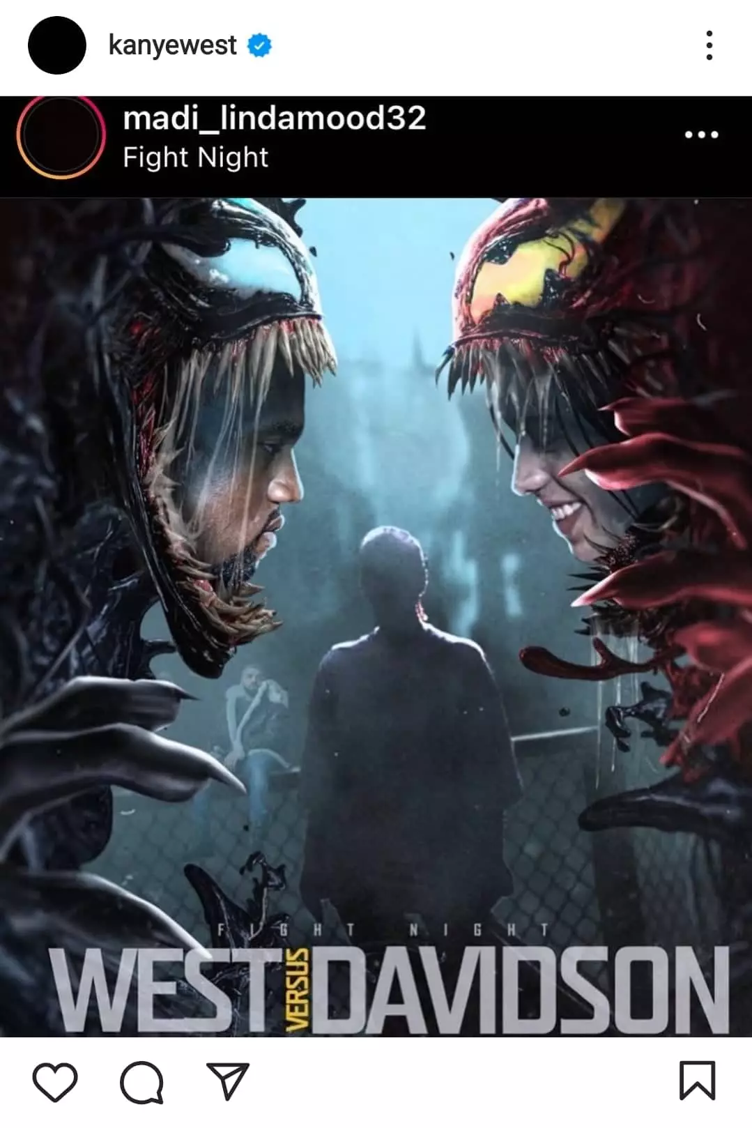 Taking the online beef even further, West also superimposed his and Davidson's faces onto the Captain America - Civil War movie poster, alongside a number of other celebrities he is either friends with or 'at war' with.