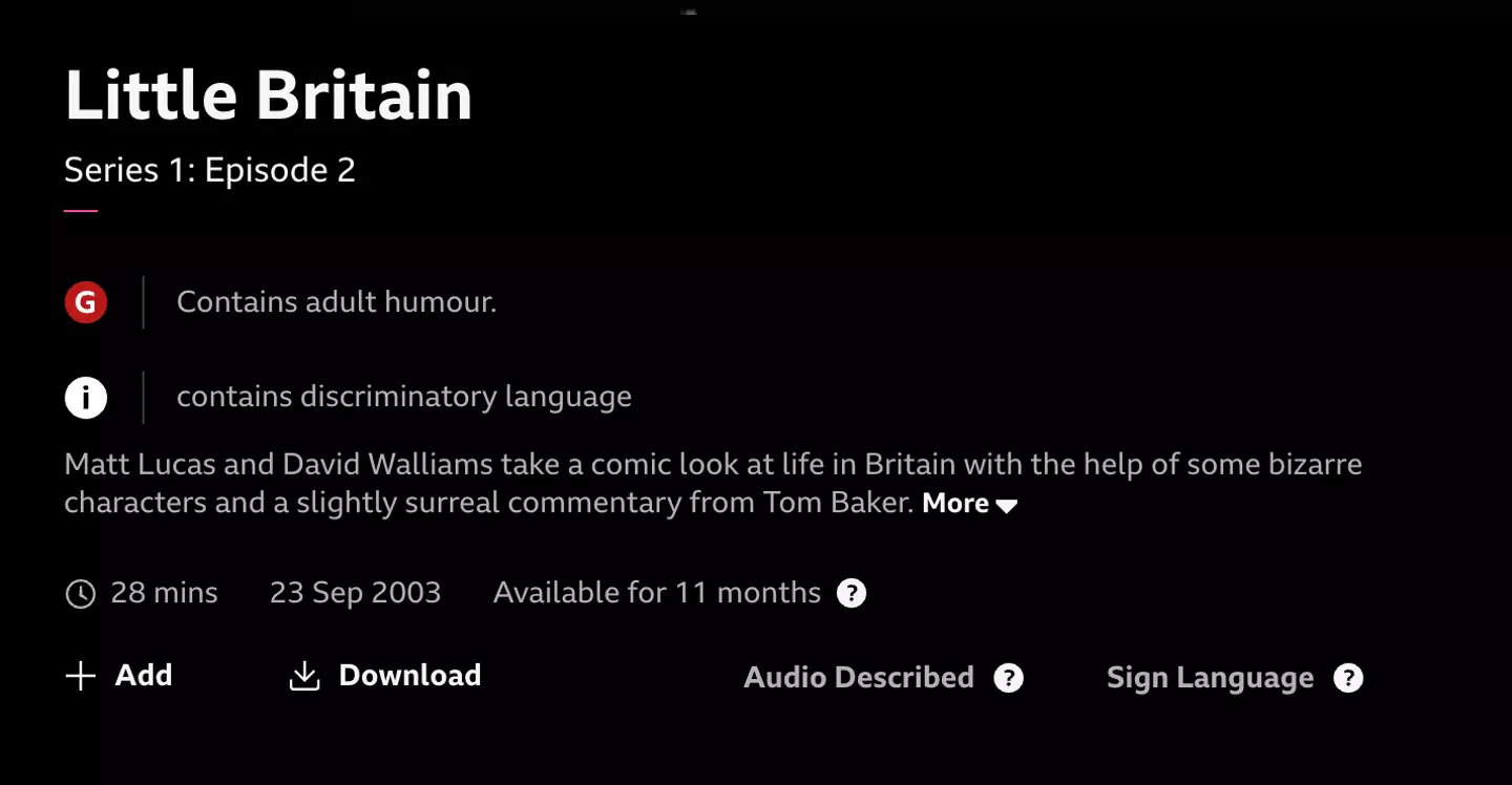 A spokesperson for BritBox said: "Times have changed since Little Britain first aired, so it is not currently available on BritBox."