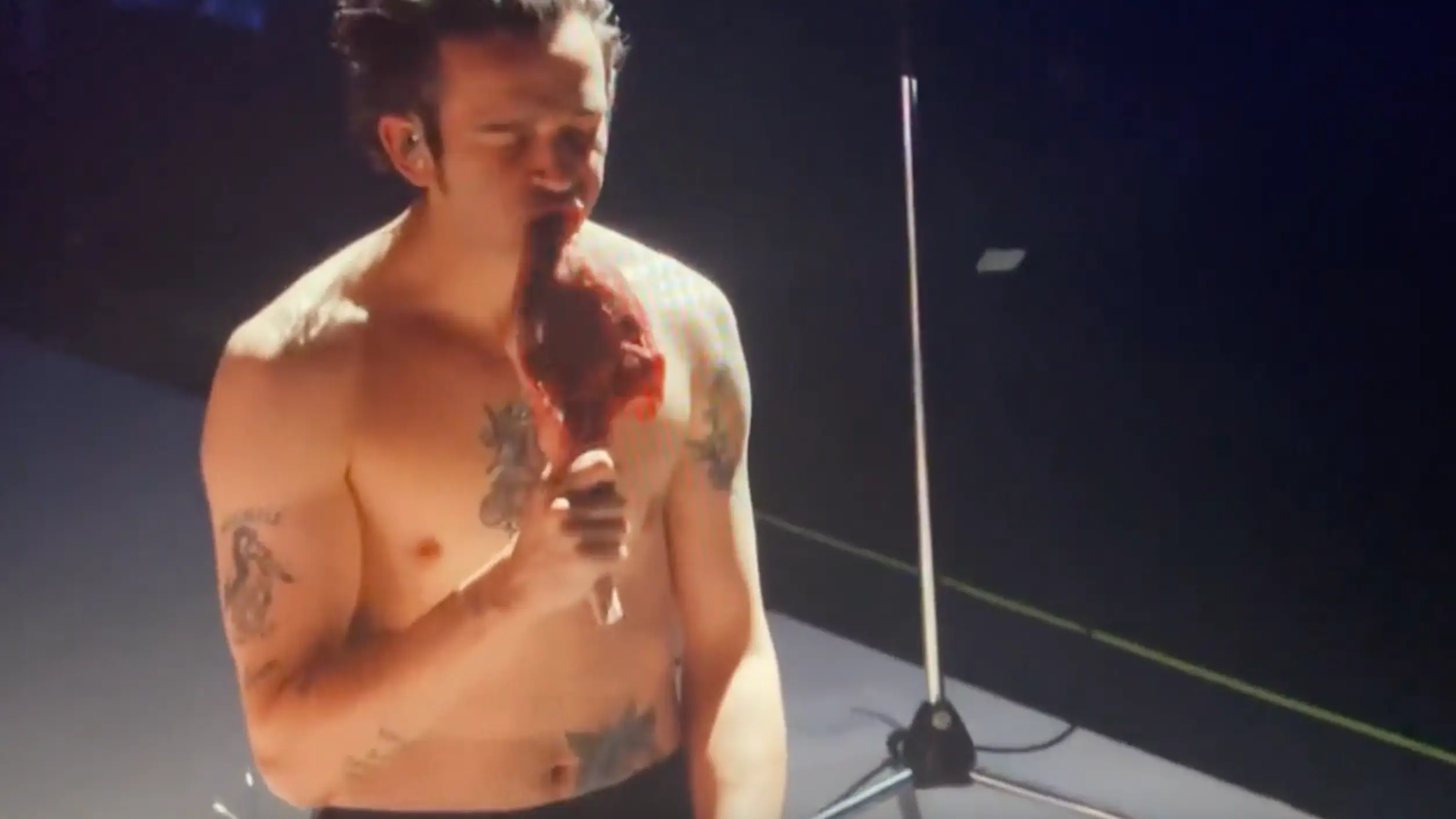 Matty Healy has been filmed eating raw meat on stage at The 1975 concert in Madison Square Garden. Watch below: