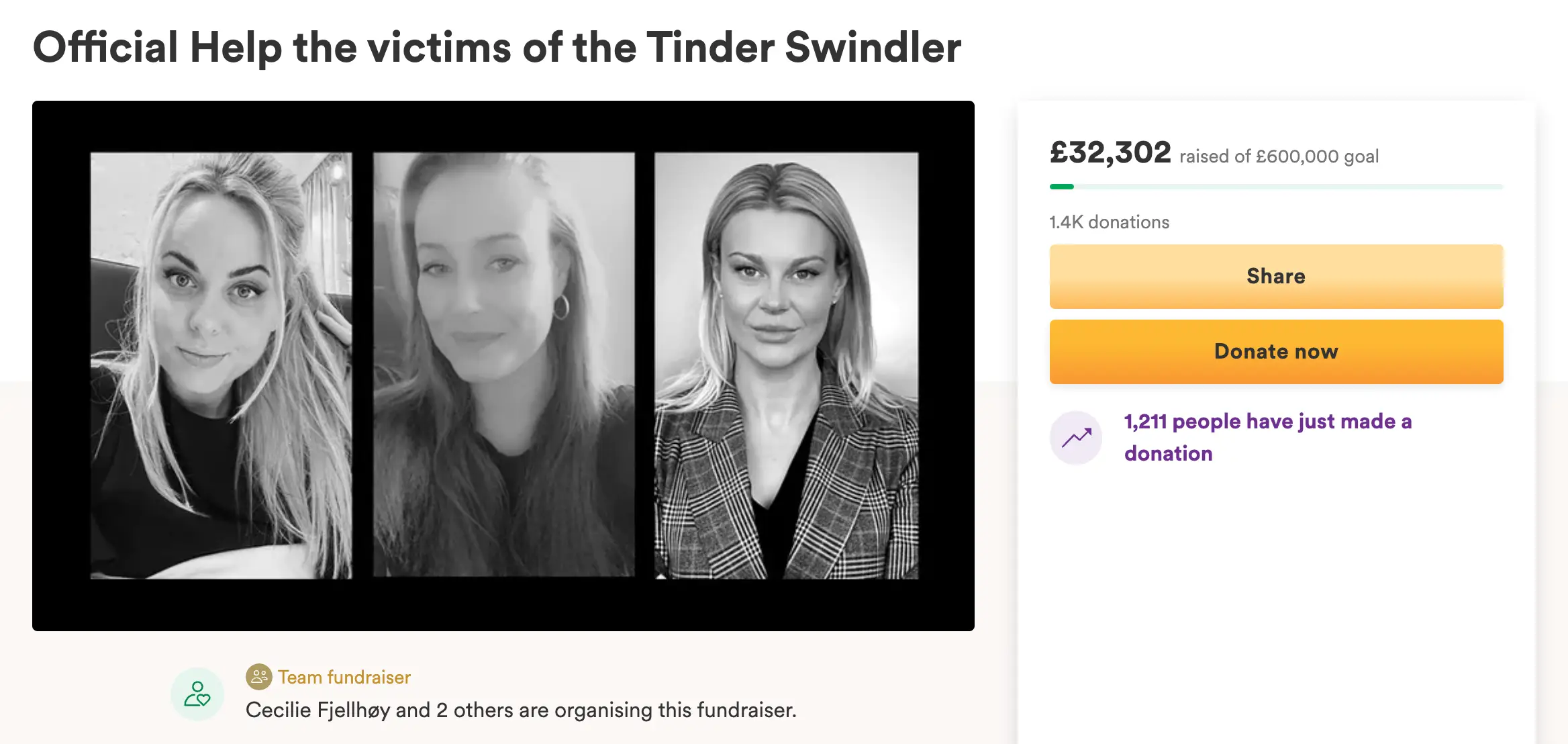 The fundraiser is being organised by Cecilie Fjellhøy, Pernilla Sjoholm and Ayleen Charlotte, who all appear in the Netflix documentary to detail their encounters with pretend playboy Shimon Hayut, who scammed women out of millions of pounds as he travelled around the world on the run from authorities.