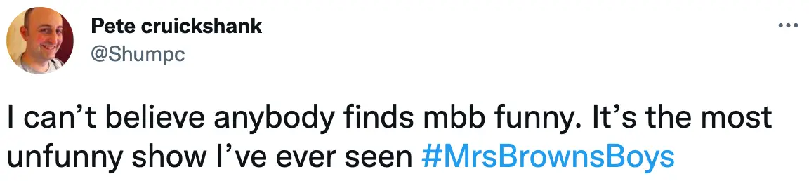 A third person penned: "I can’t believe anybody finds mbb funny. It’s the most unfunny show I’ve ever seen #MrsBrownsBoys."