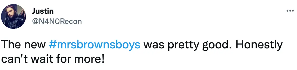 "The new #mrsbrownsboys was pretty good," one fan gushed. "Honestly can't wait for more!"