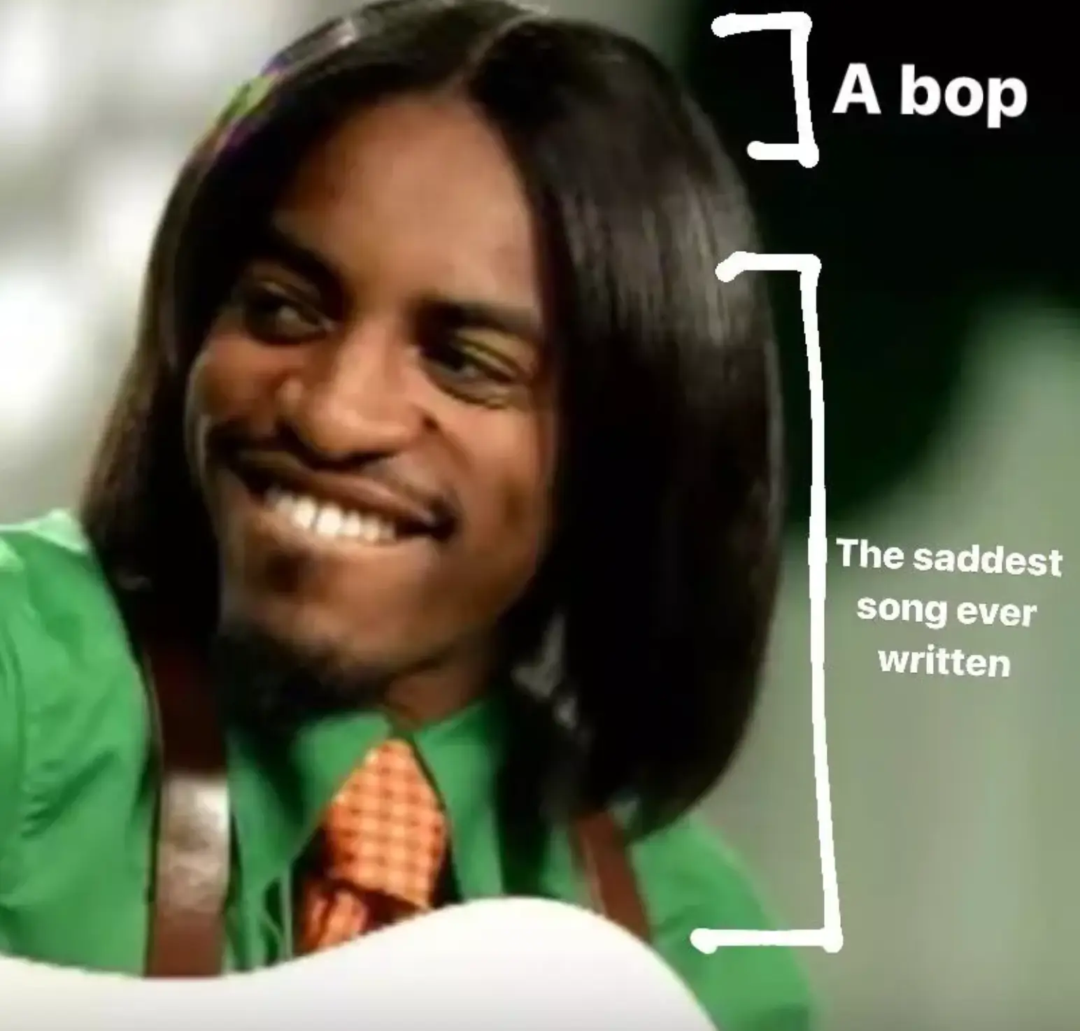 The picture underneath showed a shot of Andre 3000 in the song’s video with his head divided up into two parts.