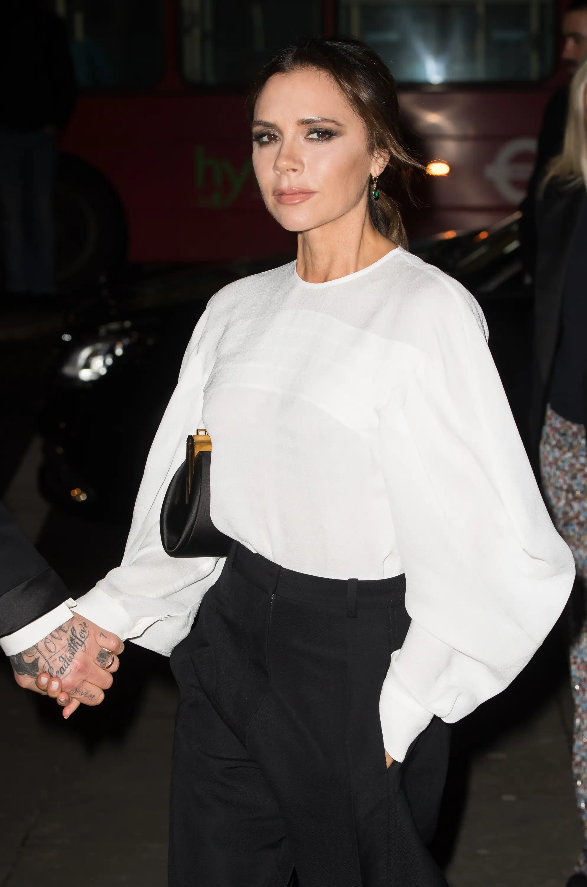 Oh, come on Vic, just get the black spaghetti strap dress out, slap on a bold dark lip and start warming up.