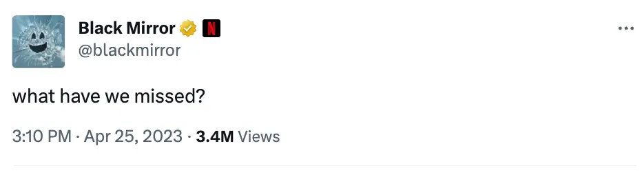The dark, sci-fi anthology series teased the return on Twitter yesterday, with a post from the official account asking: “What have we missed?”