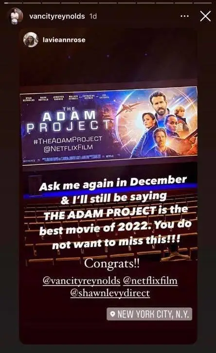 The fan wrote: "Ask me again in December and I'll still be saying The Adam Project is the best movie of 2022.