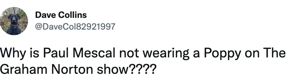 Addressing the actor directly, a second tweeted: "@mescal_paul where’s your poppy?!"