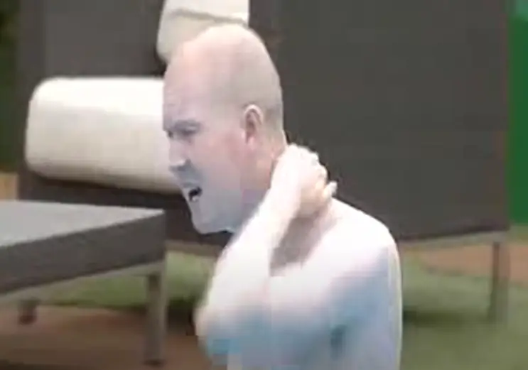 Mikey was just enjoying some peace and quiet in the pool when his housemates' shoddy aim left him with a massive mark on the back of his neck and a fair few swears coming out of his mouth.